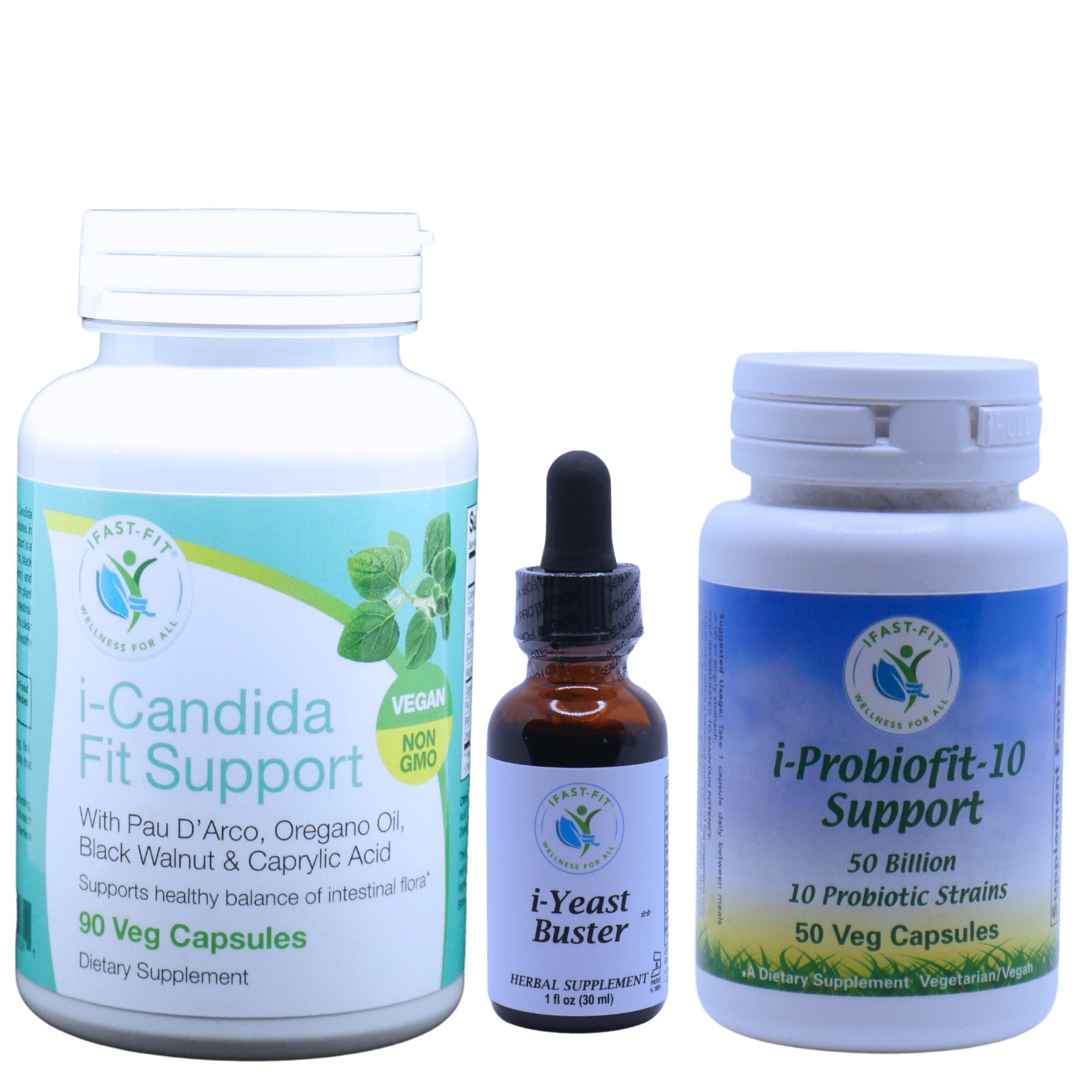 - i-Probiofit-10 Support- Este es un probiótico completo con 10 diferentes cepas de probióticos que ayudaran a contrarrestar la buena bacteria que se llevó el iCandida-Fit Support
